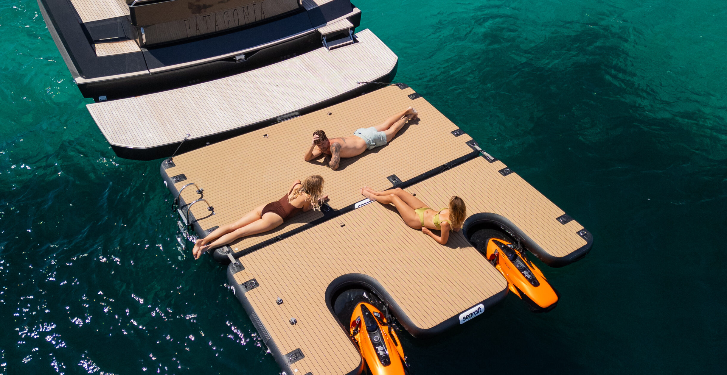 Another factor is practicality. Storing jet skis, Seabobs, and other equipment can be complicated and time-consuming, and sometimes it even risks damaging the yacht’s sides. Inflatable platforms solve this by creating dedicated docking or storage areas. They reduce the strain on the vessel itself while offering more organized access to water toys.